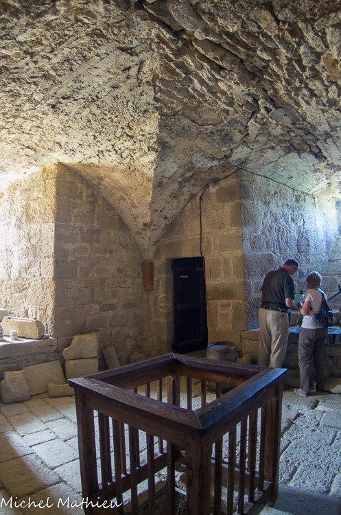 Ancienne cuisine, avec au milieu, l'ouverture de la citerne située en contre-bas.
