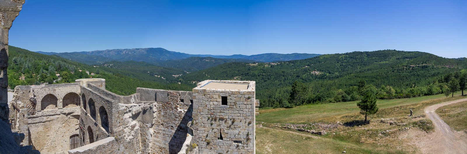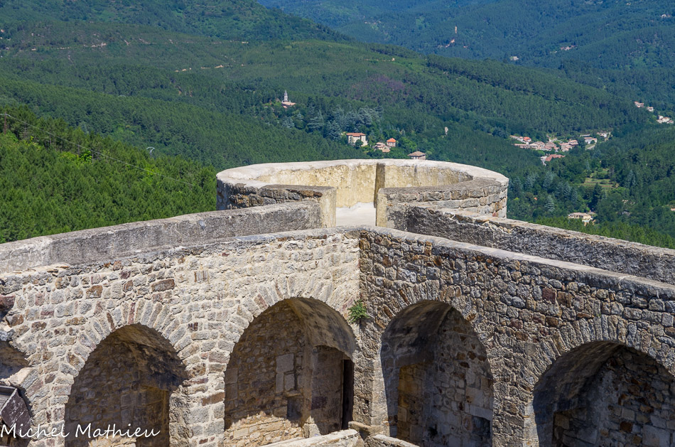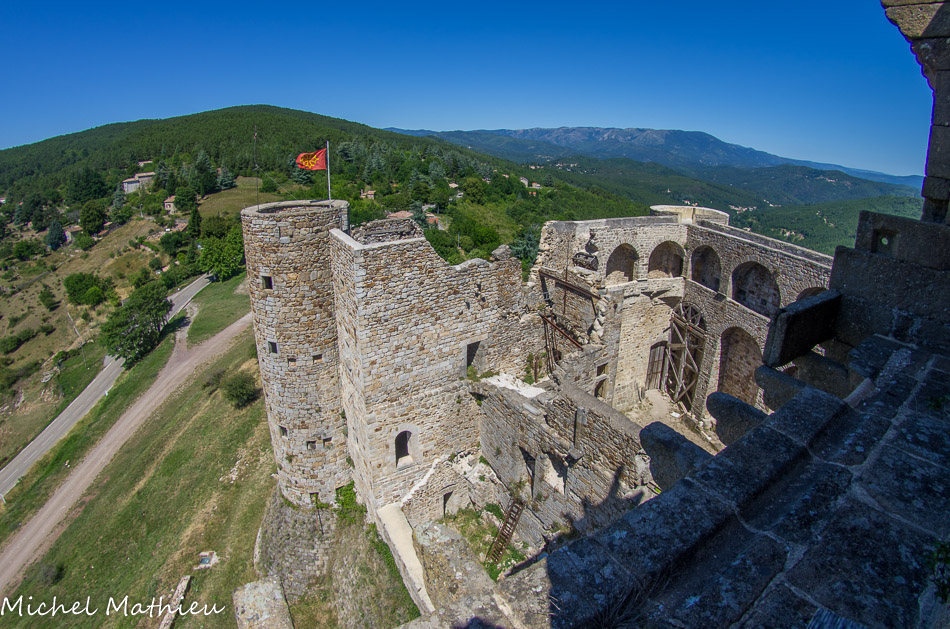 Le chemin de Régordane. Le château surveillait ce chemin (ou voie) qu’empruntaient les pèlerins de Saint-Gilles et les Croisés vers la Terre sainte sur dix lieues.