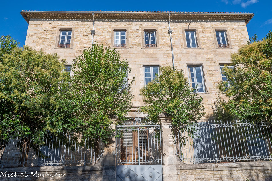 Place de l’Esplanade avec l’ancien Hôtel de Ville. L'Hôtel de ville existe à cet emplacement depuis 1647, date de sa construction sur la Halle de la ville. Il fut modifié fortement au milieu du 19ème siècle. La Halle était le point central de Barjac. Il s'y est tenu jusqu'au milieu du 19ème siècle les foires et marchés qui on fait la renommée du village.
