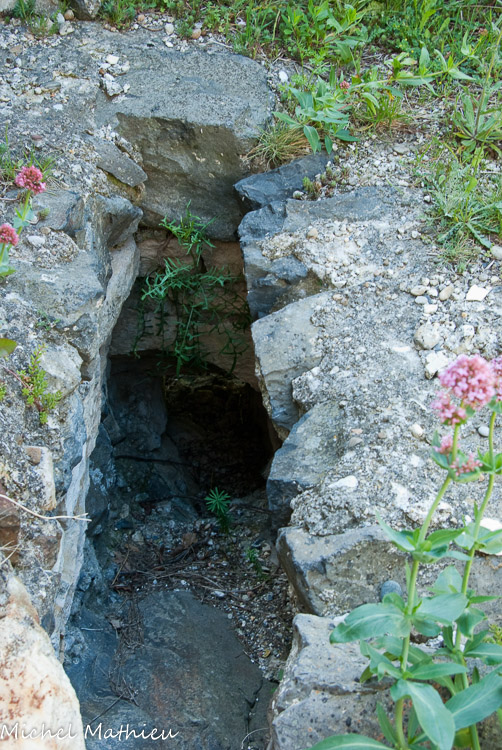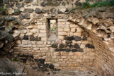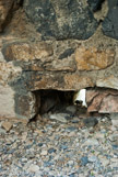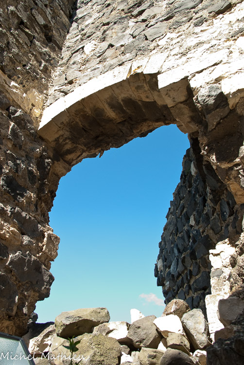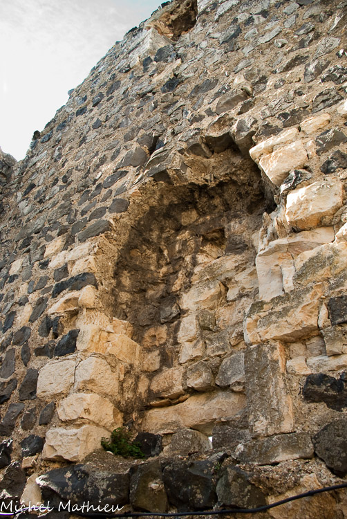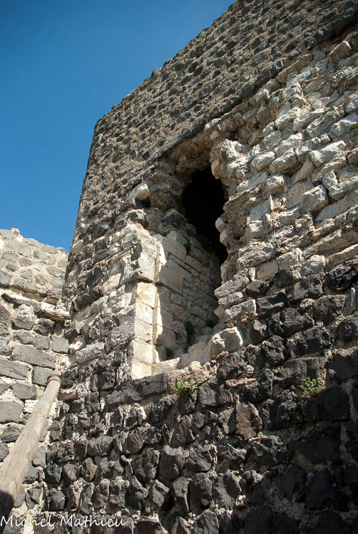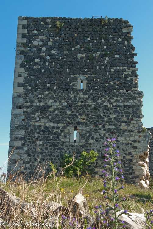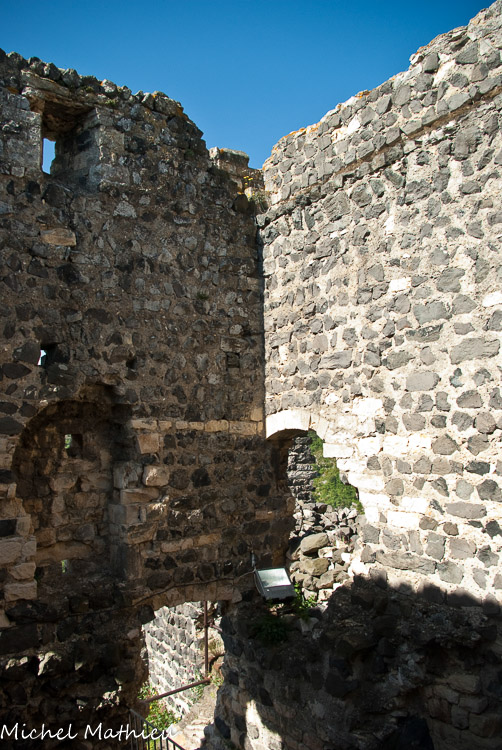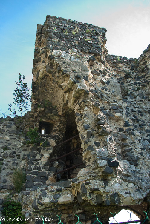 Vestiges de l'ensemble castral, avec les prismes basaltiques inclinés.