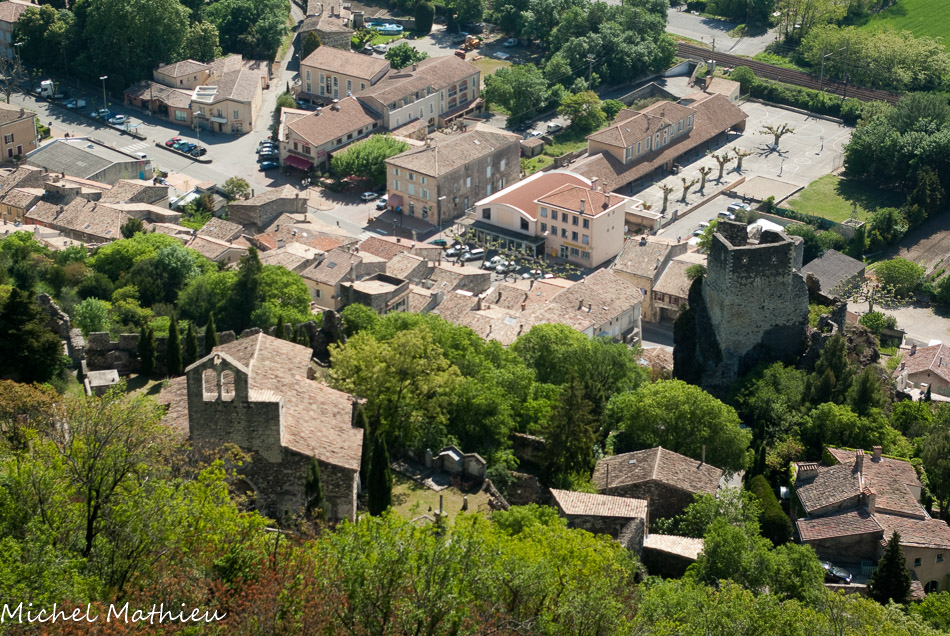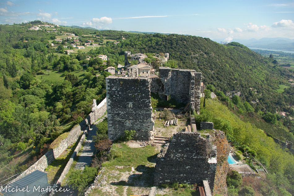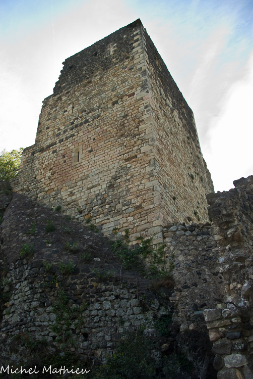 Le donjon, un des plus anciens de la vallée du Rhône, s’érige encore majestueux avec ses quarante mètres de hauteur. Il urait été construit entre 1120 et 1140 par un fils ou petit-fils de Hugues Adhémar de Monteil, seigneur de Montélimar, dont le frère fut évêque du Puy et chef spirituel de la première croisade.