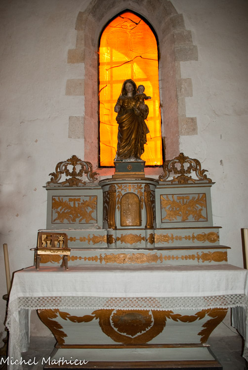 Vierge à l'Enfant, XIXe. Maître-autel, XVIIIe, en bois taillé et doré