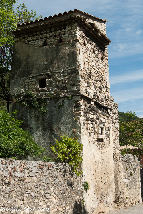 Vestiges de la demeure seigneuriale. Au 13 ème siècle furent construits la maison seigneuriale et des remparts, à savoir la grande enceinte au nord du donjon qui enserre le village de la Fare et la maison seigneuriale, ainsi que deux murs crénelés descendant l’un du château, l’autre du village jusqu’au Rhône.