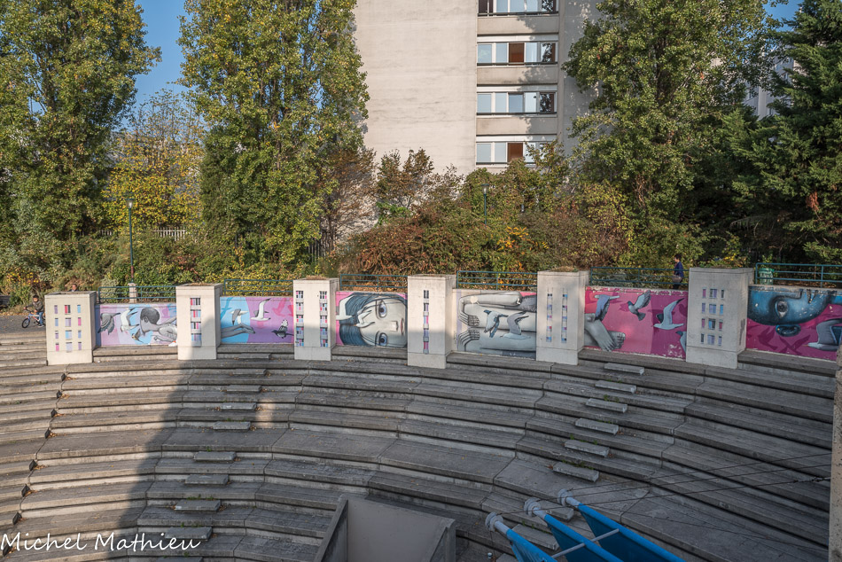 Cette fresque a été encadrée par la Maison de la Plage, et soutenue par PARIS HABITAT, la VILLE de PARIS, la Direction Départementale de la Cohésion Sociale, et le Conseil de Quartier de Belleville.