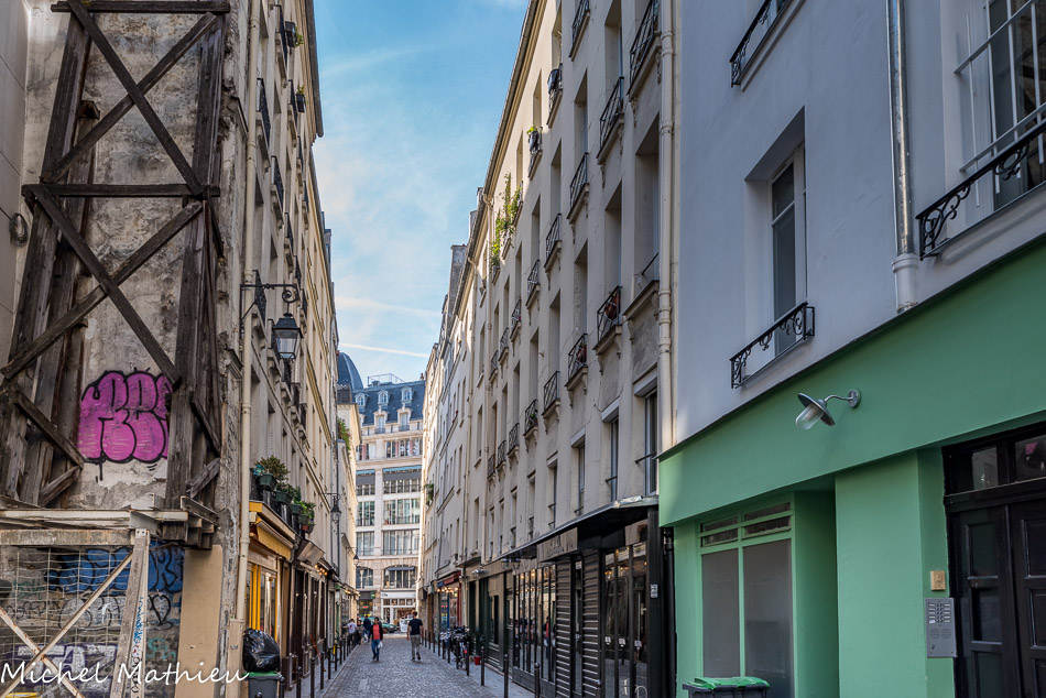 Les arcades datent de la Restauration, mais ces immeubles sont situés sur le tracé du mur de Philippe-Auguste.