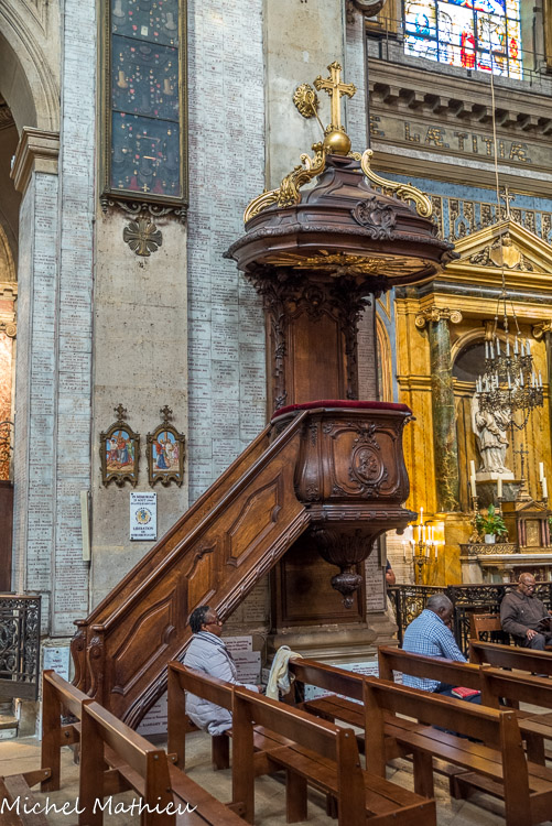 La chaire à prêcher du XVIIIe siècle, œuvre du maître-sculpteur Louis-Alexandre Régnier ; elle accueillit le père Lacordaire entre 1848 et 1850.