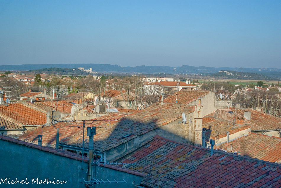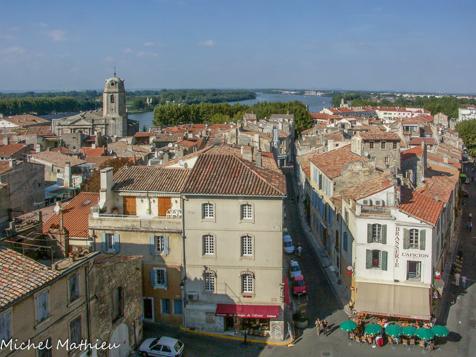 Le clocher de St Trophime et la tour de l'horloge de la mairie.