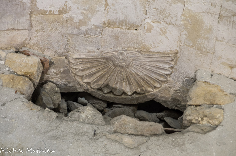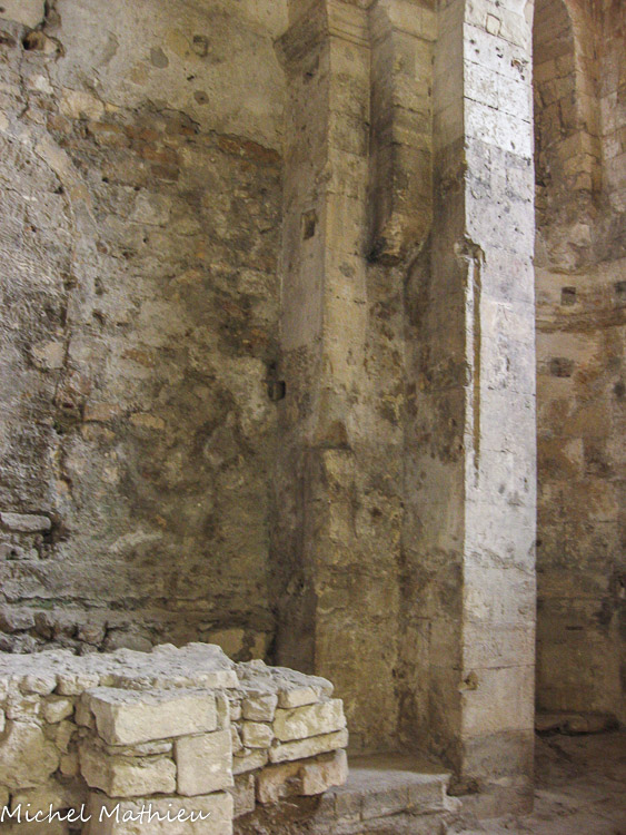 La voûte en berceau légèrement brisé est soutenue par des doubleaux à ressaut appuyés sur des piliers massifs.