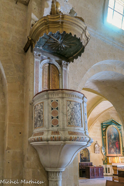 Chaire à prêcher. En marbre polychrome du XVIIIe siècle, elle a été sculptée, comme celle de la chapelle des Rois de Saint-Trophime, par le lisbonnais Emmanuel Carvalho, inscrite au titre objet des monuments historiques depuis le 29 octobre 1997