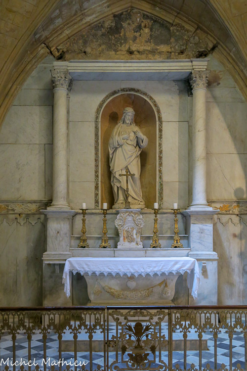 Chapelle du Sacré-Cœur. Au centre, Sacré Cœur de Jésus, statue en marbre du XIXe siècle, dessinée par Johann Friedrich Overbeck et sculptée par Hauffman, bénie par le pape Pie IX.