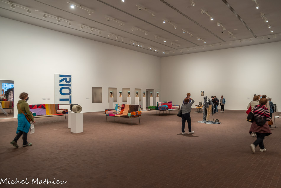 Deuxième étage. La Formation. Rénové en 2018 par Annabelle Selldorf, cet ancien centre de formation du personnel de la SNCF est aujourd’hui le bâtiment du Parc des Ateliers dédié aux résidences d’artistes et au spectacle vivant. Si la façade en calcaire et en stuc naturel du bâtiment est restaurée à l’identique, l’intérieur de La Formation est transformé par Selldorf Architects pour répondre aux besoins du programme LUMA Arles. Devant, Krauses Gekröse de Franz West.