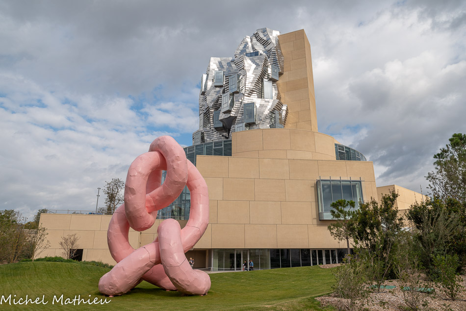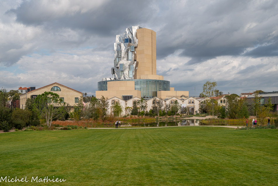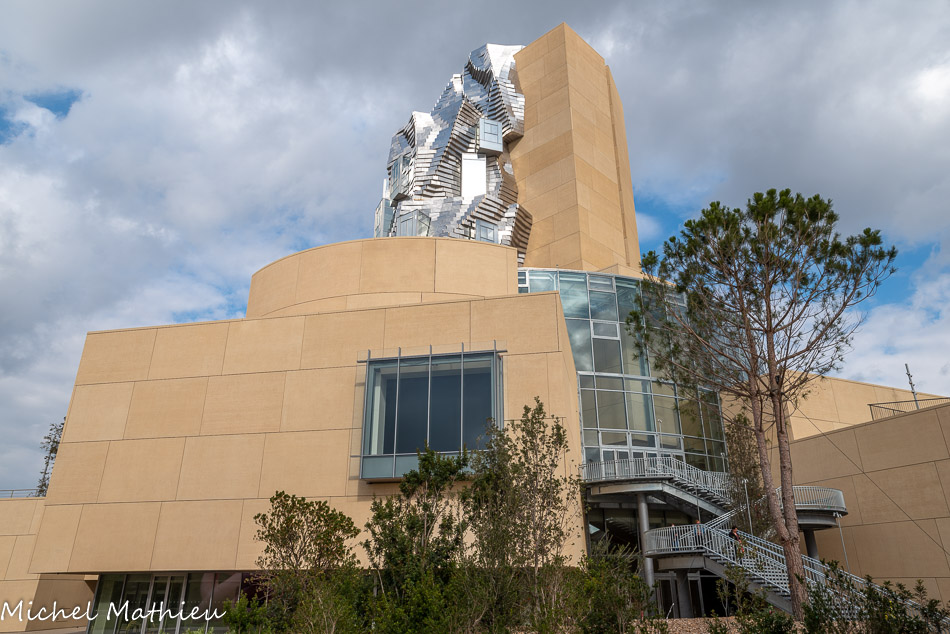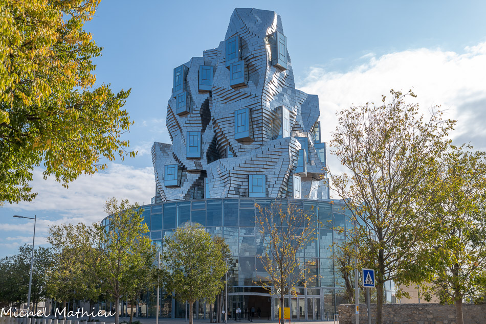 Ce bâtiment imaginé par Frank Gehry présente une façade torsadée ornée de briques en acier inoxydable. Ce matériau propre au travail de l’architecte, capte et restitue toutes les variations lumineuses du ciel et confère au bâtiment un aspect en perpétuel changement. Ce choix esthétique est un clin d’œil à la touche picturale de Vincent Van Gogh, qui n’avait de cesse de capter sur ses toiles les nuances et variations lumineuses du ciel provençal lors de sa période arlésienne.