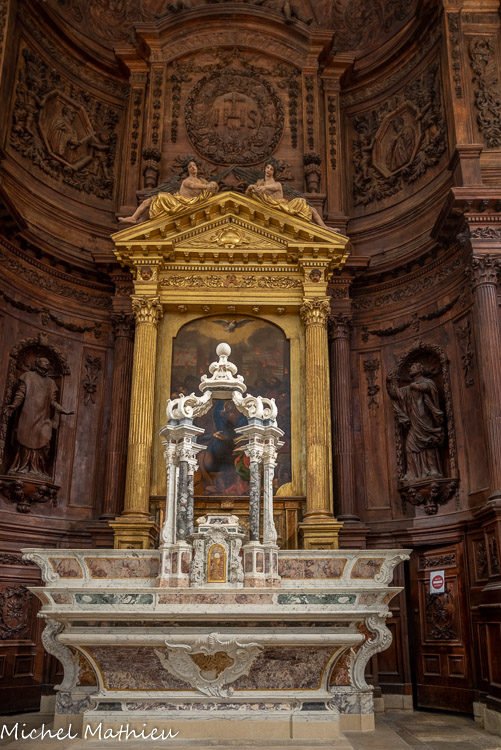La chapelle des Jésuites. Maître autel en marbre polychrome.