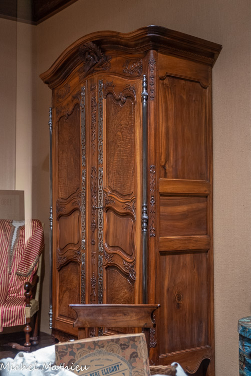 Armoire de mariage en noyer. Le caducée montre que le mari était pharmacien.