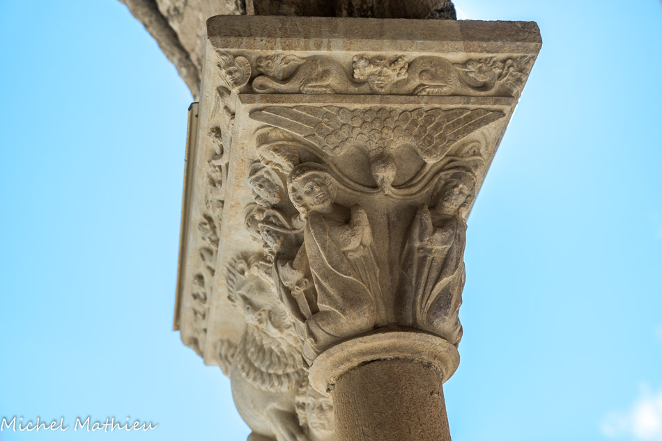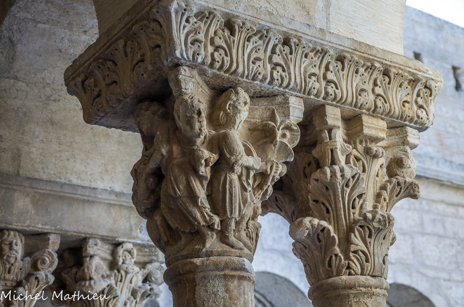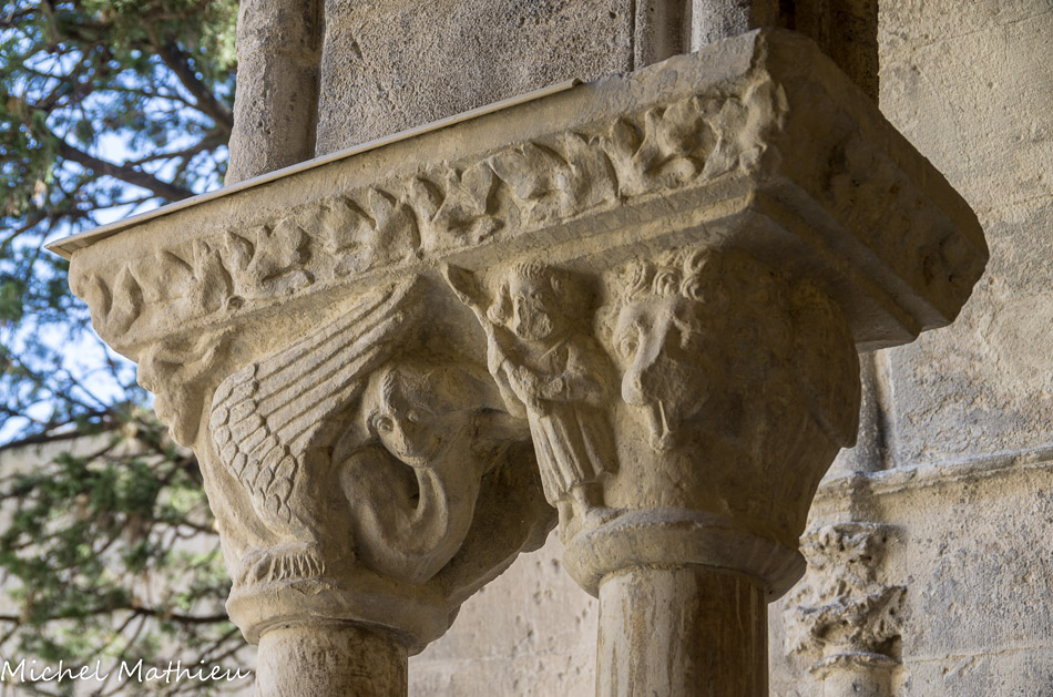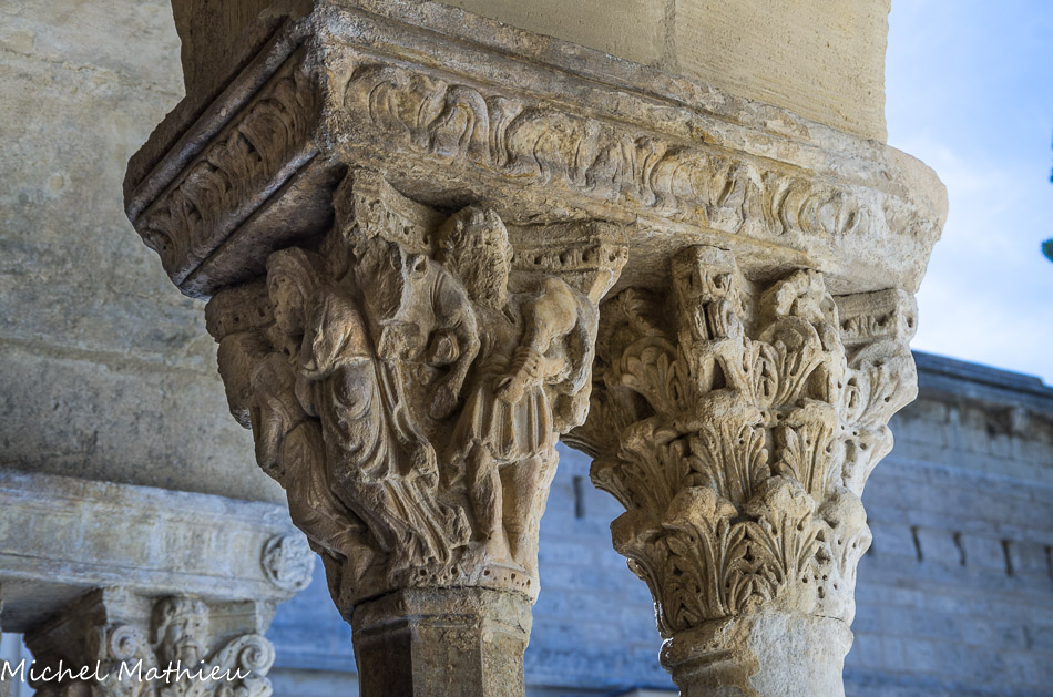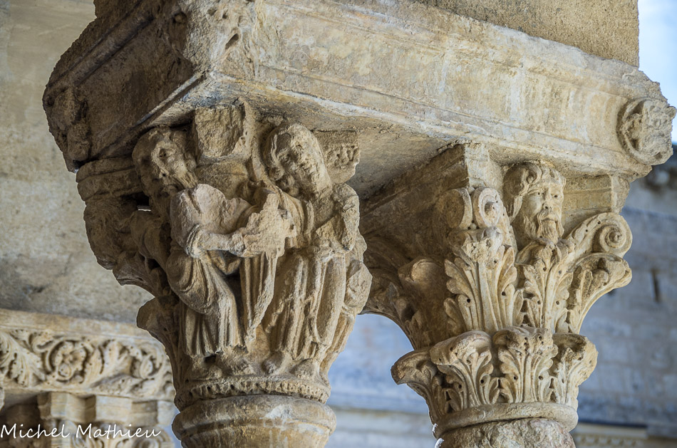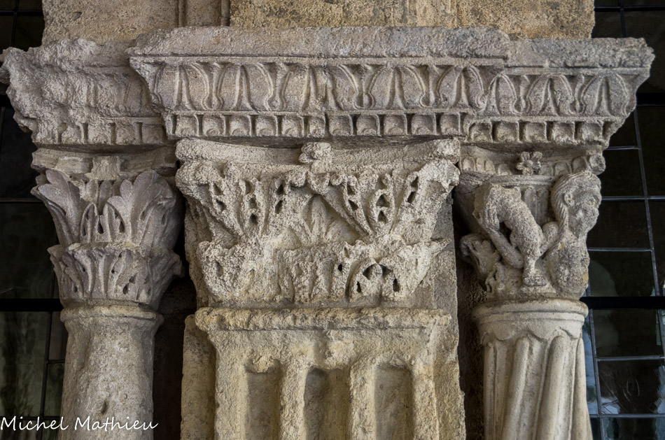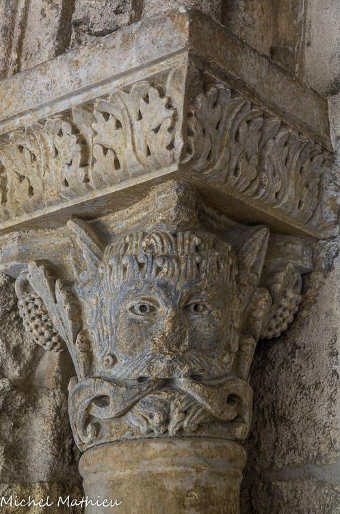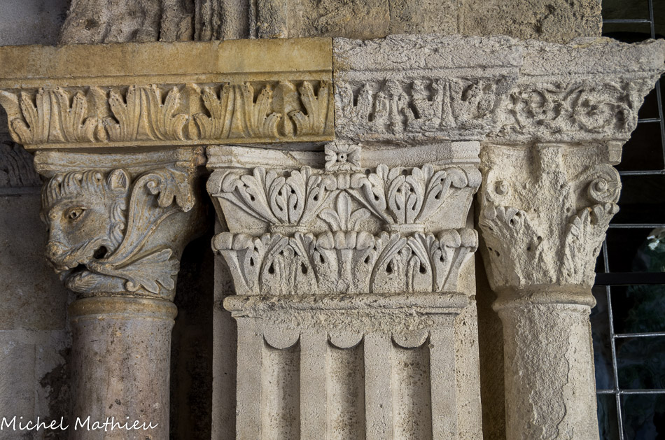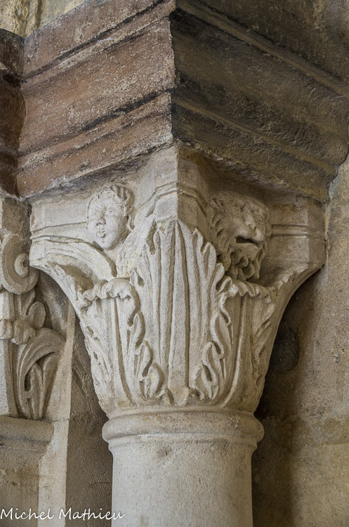Galerie Ouest. Les faces extérieures des chapiteaux, rarement historiés en général, sont, comme celui-ci, à feuillage.