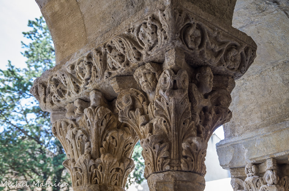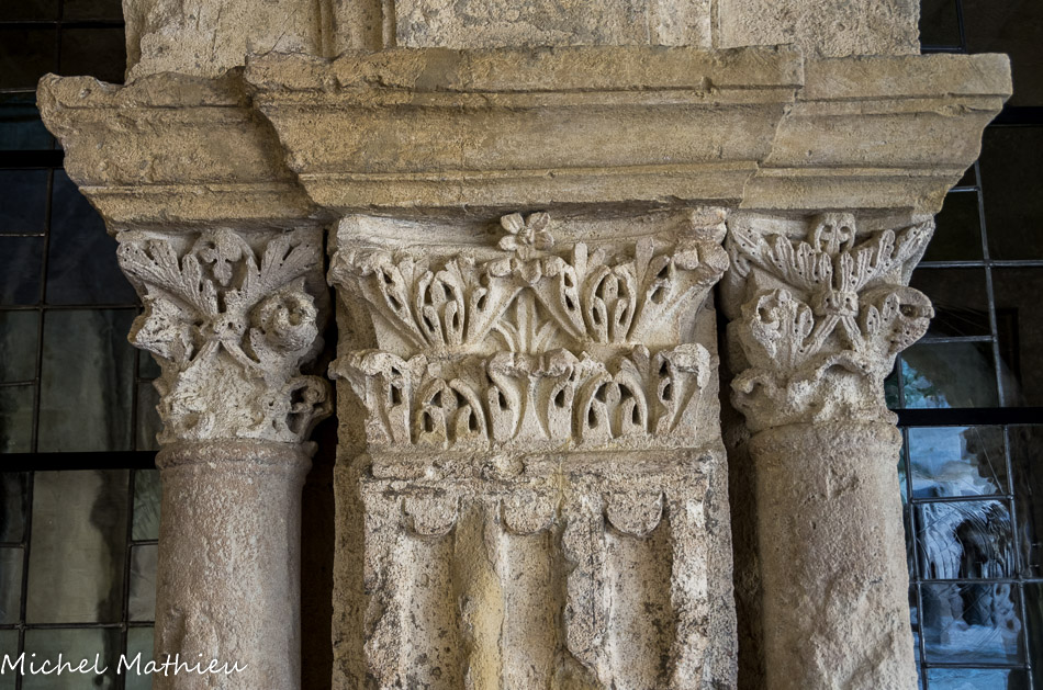Galerie Sud. Colonnettes gothiques portant un chapiteau double taillés dans un même bloc.