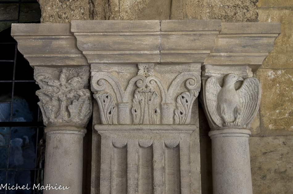 Galerie romane Nord. Les deux colonnettes sont cylindriques, bases à deux tores inégaux.