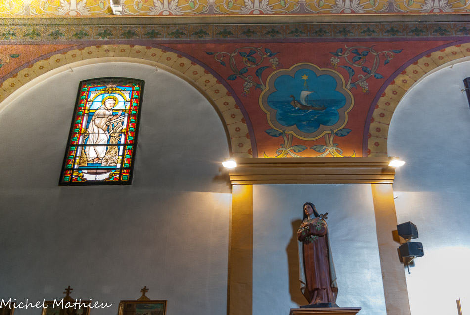Les vitraux sont aussi d’origine. Le Bon Pasteur.