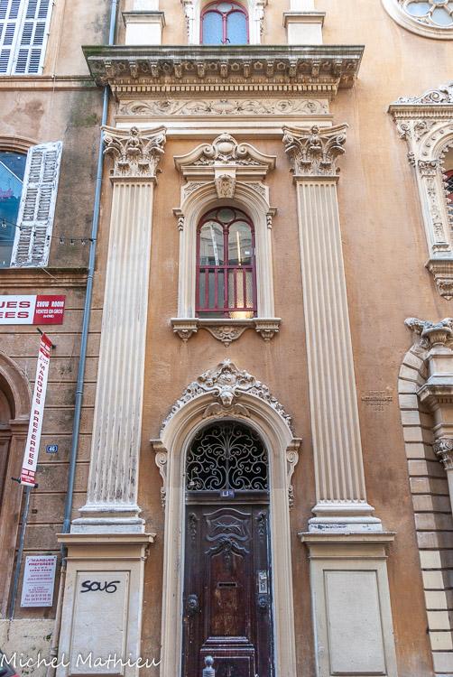 Les ferronneries, les boiseries et les sculptures des trois portes sont du XVIII. Michel les a incorporées dans la nouvelle façade.