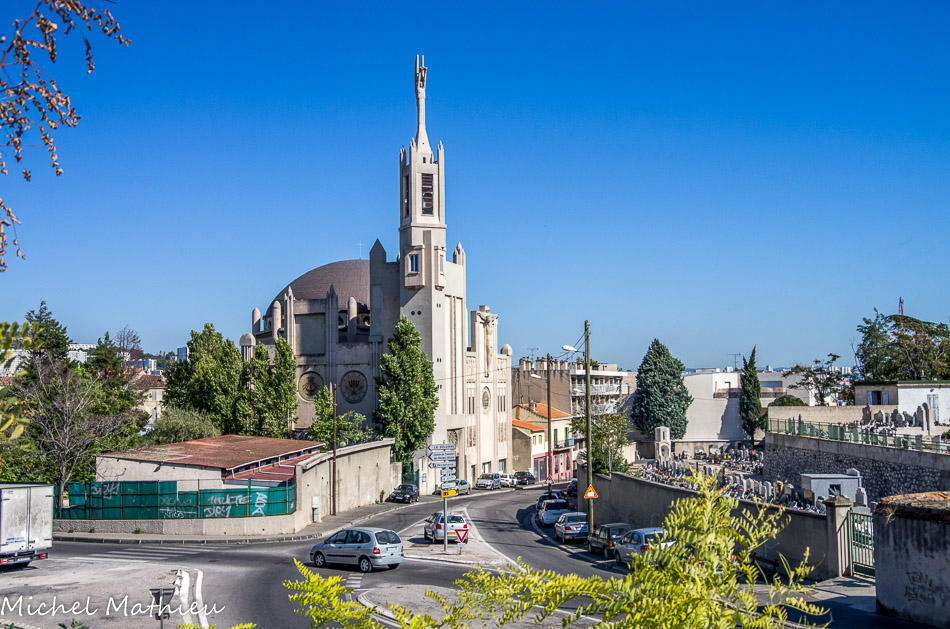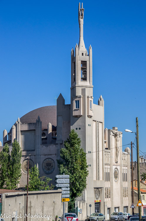 L'architecte est Jean-Louis Sourdeau, secondé par les ingénieurs Huot et Brémond et par la société d'entreprise de Lugagne et De Bouillanne. C'est un des tout premiers édifices religieux construits en béton de France, on retrouve ce matériau aussi bien dans l'architecture que dans la décoration. C'est la première église en France qui a été donnée aux prêtres ouvriers.