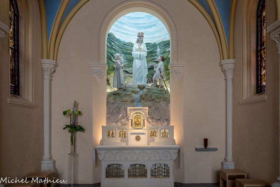 Celui-ci représente, à gauche, la Vierge de la Salette et les deux enfants, témoins de l'apparition.