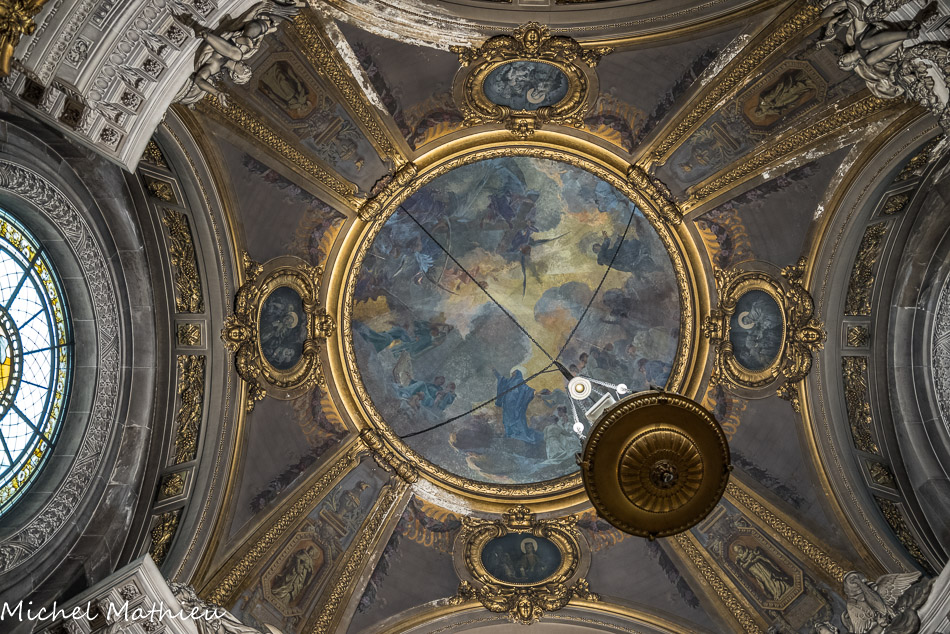 Elle est surmontée de cinq bulbes fabriqués à Vannes (Morbihan) et constitués de vingt pétales de fibre de verre, recouverts de 90 000 feuilles d'un alliage d’or et de palladium, ce qui leur confère un aspect relativement mat. Ces cinq bulbes symbolisent le Christ et les quatre Évangélistes du Nouveau Testament : Jean, Luc, Marc et Matthieu. Le plus grand mesure 17 m de circonférence et pèse 8 tonnes.