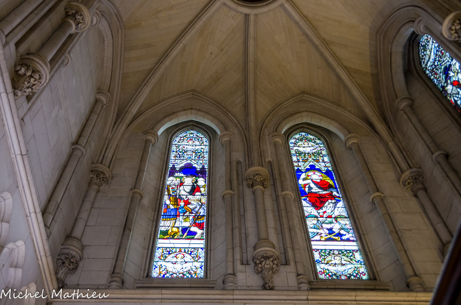 Une quarantaine de vitraux illustrent le Venite et le Te Deum.