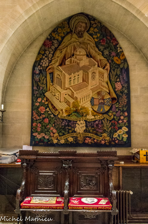 Les 600 œuvres de tapisserie qui ornent l'église, sont l'œuvre de membres et amis de la paroisse. Le long de l'allée centrale, des coussins brodés portent les fleurs officielles des 50 états américains.