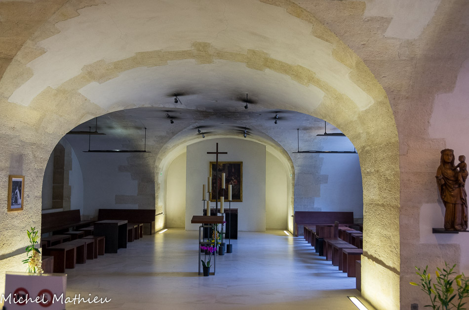 Dans la crypte a été aménagée une chapelle très dépouillée
