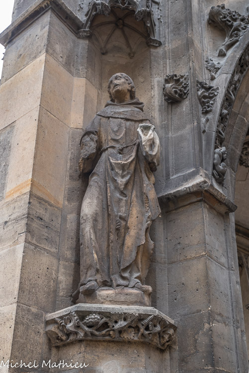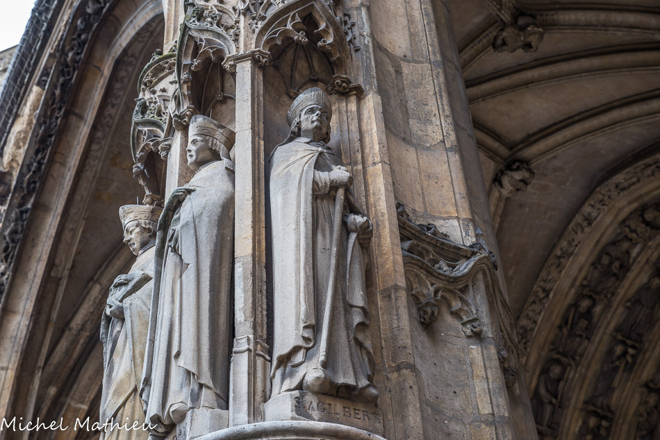 Les autres statues ont été commandées à Desprez en 1841. Le porche flamboyant a été construit par Jean Gaussel ( 1435-1439). Au sommet du pignon, saint Michel par Marochetti.