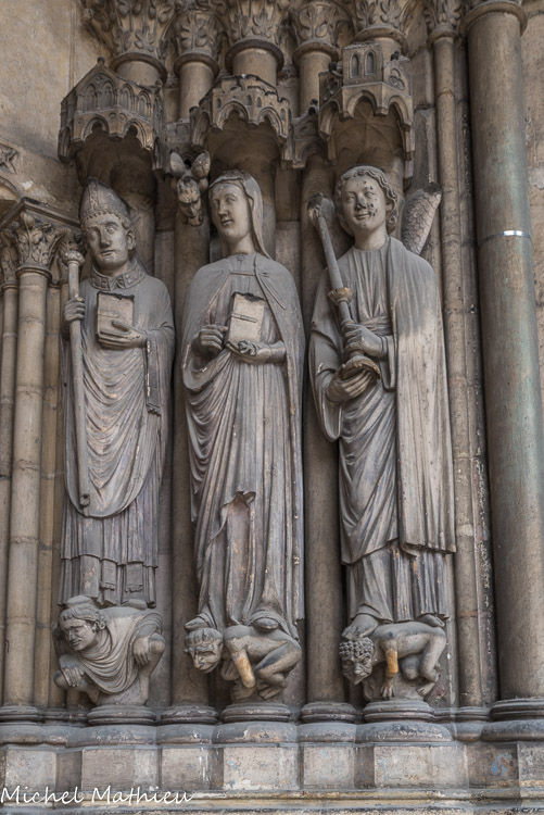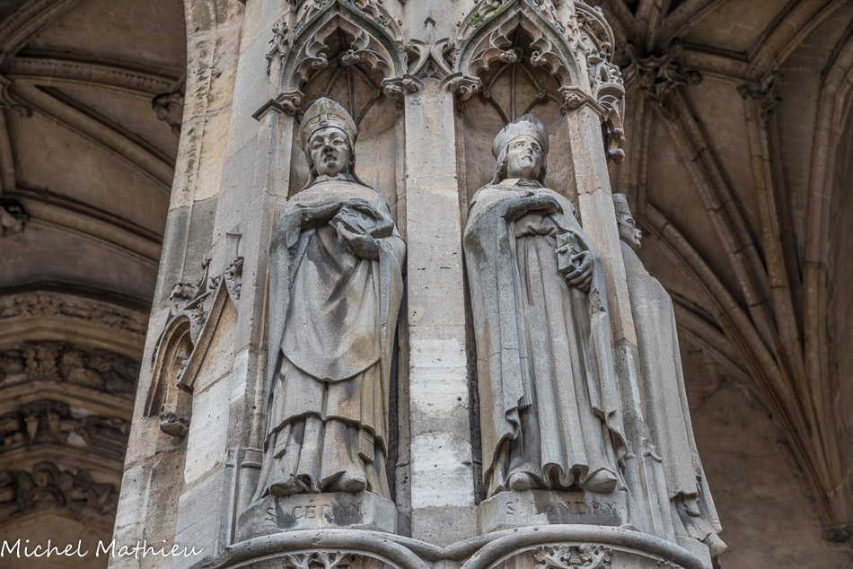 A gauche, la reine Ultrogothe, le roi Childebert Ier (ou le roi Robert et la reine Constance) et saint Vincent (ou st Landry), les fondateurs de l’église.