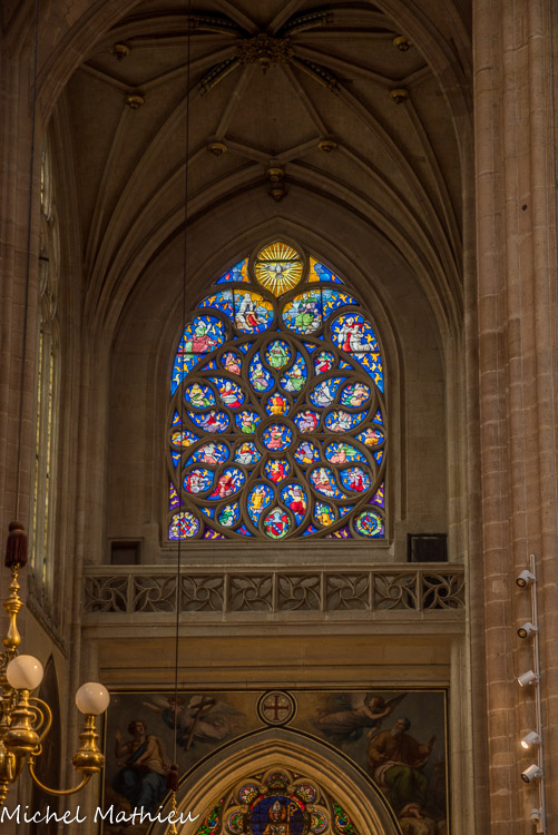 Transept sud. Rose La Pentecôte (XVIe siècle) par Jean Chastellain sur des cartons de Noël Bellemare, 1532.