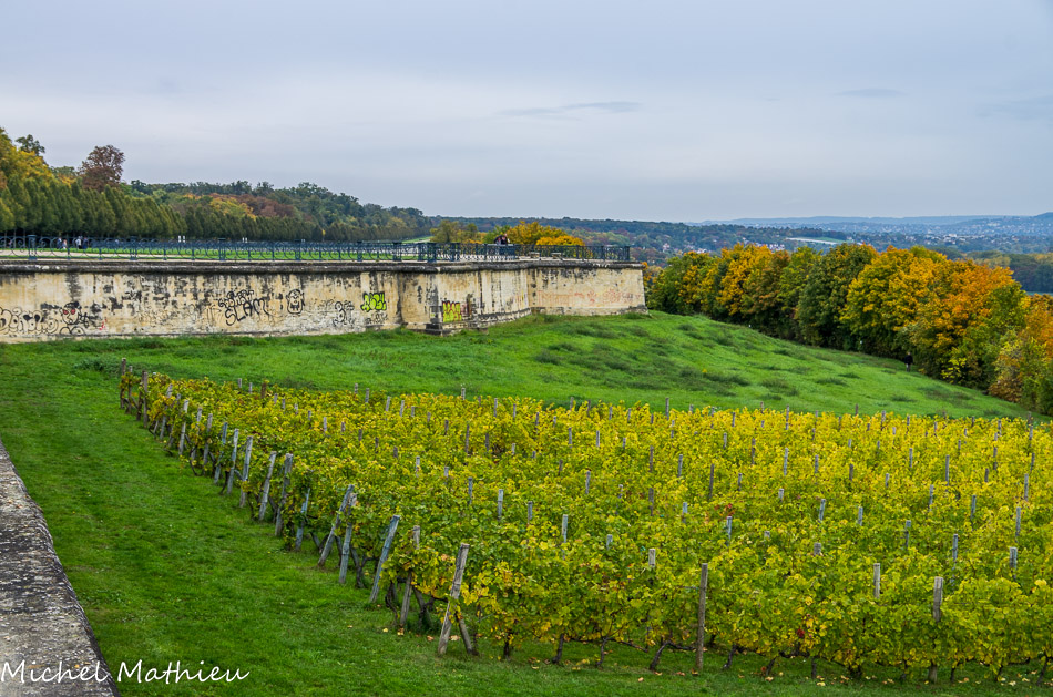 La vigne en automne. Au fond le Pavillon Henri IV.