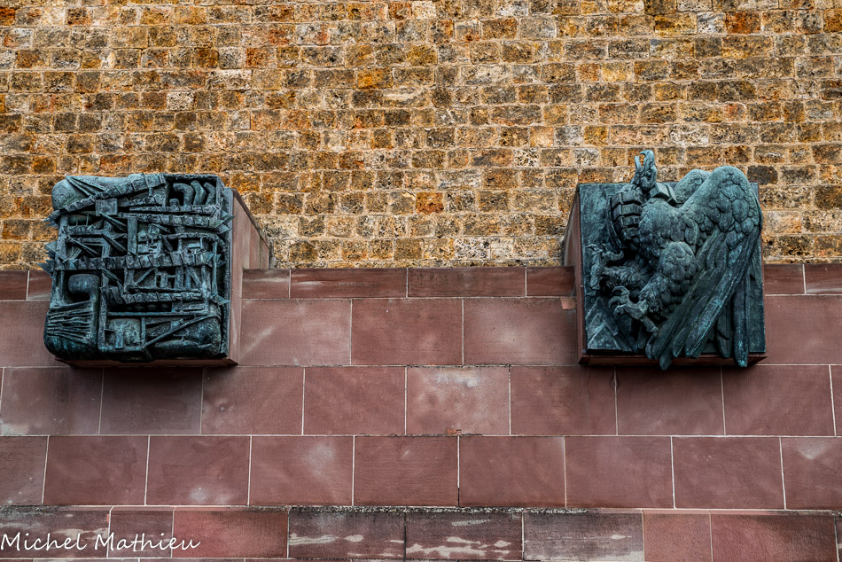 Le long du mur, 16 sculptures différentes, équivalentes des métopes grecques, en bronze, symbolisent les différentes formes des combats pour la Libération.