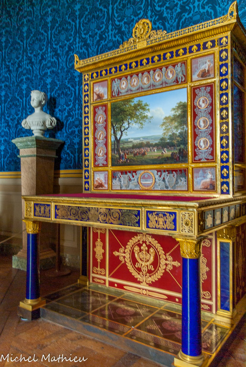 Le salon des Malachites. C’est dans le grand salon à l’Empereur que l’on plaça les présents en malachite du tsar Alexandre Ier à Napoléon, qui donnèrent leur nom à la pièce. Les objets d'art (candélabres, vases, vasque) sont fabriqués avec les blocs de malachite de Sibérie. On remarque aux murs trois chefs-d'œuvre de Charles de La Fosse : Apollon et Thétis, Diane et ses nymphes et Clytie changée en tournesol.