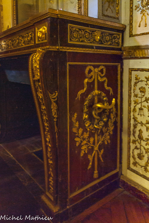 Le chauffage faisant défaut au XVIIIe siècle, Louis XV n’accepte plus l’obligation de dormir dans le lit de son ailleul et fait construire de petits appartements privés à l’intérieur même des grands appartements qu’avait fait construire Louis XIV. A l’abri des regards de la cours et des obligations de l’étiquette, il pourra alors profiter de moments d’intimité avec ses proches. Il y mourut le 10 mai 1774 à une heure de l’après-midi. Le sculpteur Jacques Verberckt en exécuta les boiseries.