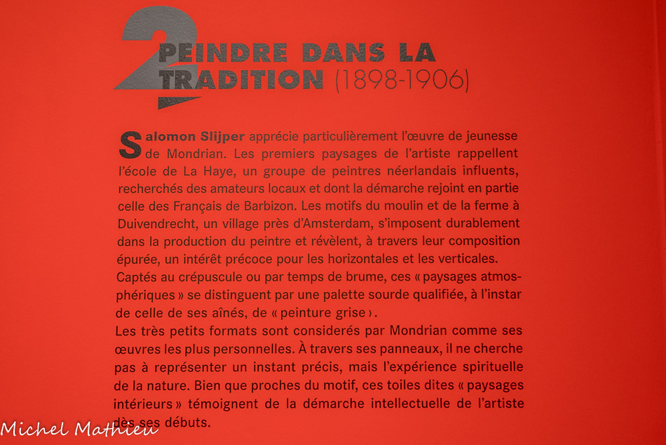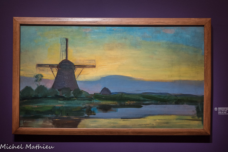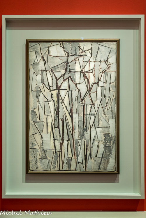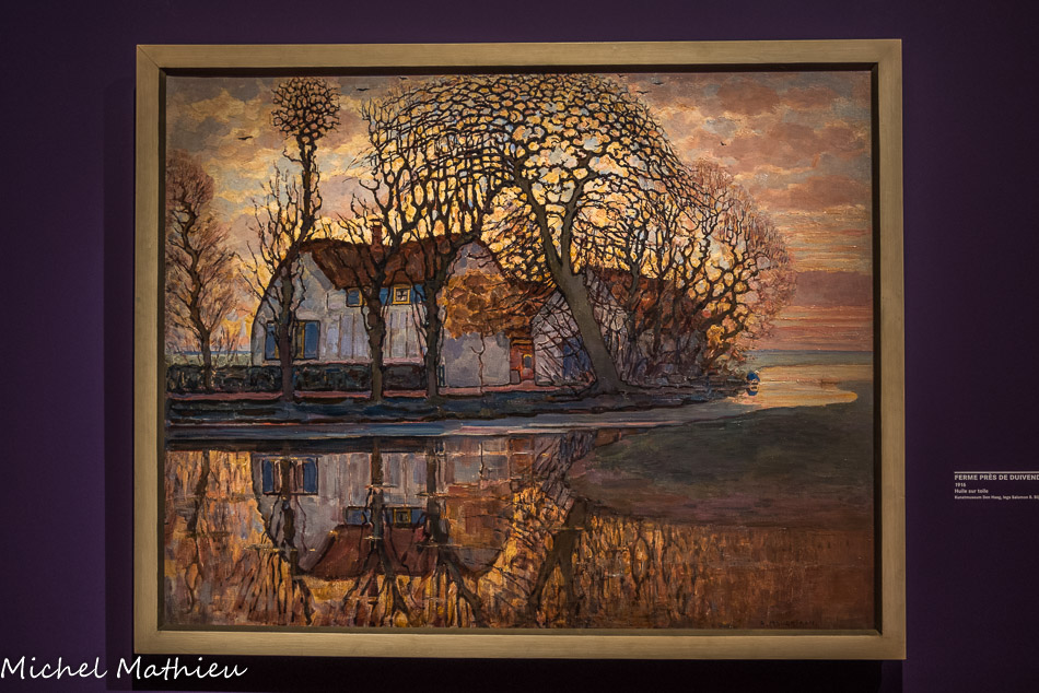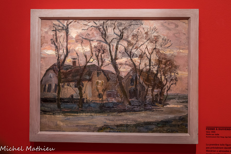 Huile sur toile. Quand Slijper et Mondrian se rencontrent en 1915, la guerre fait rage. Réfugié aux Pays-Bas pendant le conflit, Mondrian a laissé la plupart de ses toiles à Paris. Slijper se procure alors ses premières pièces auprès d’amis du peintre. Anna Bruin et Simon Maris lui cèdent en 1916 huit toiles qui constituent le véritable point de départ de sa collection. Ce paysage est l’unique œuvre du groupe identifiée avec certitude. La plupart des peintures sont transportées chez Slijper à Amsterdam par chaland, protégées par de simples couvertures. Les prix pratiqués sont toujours