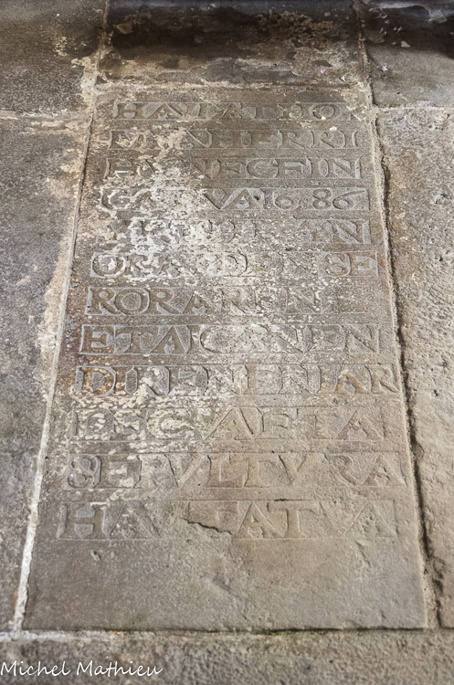 L'édifice actuel date de 1626, comme en témoigne l'inscription au-dessus de l'arcade, côté place.