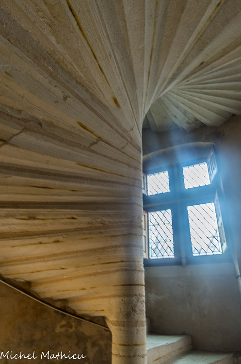 A l’intérieur, l’escalier dessert des portes surmontées d’arcades tandis que de petites niches ont été aménagées dans les parois des murs pour y loger de l’éclairage.
