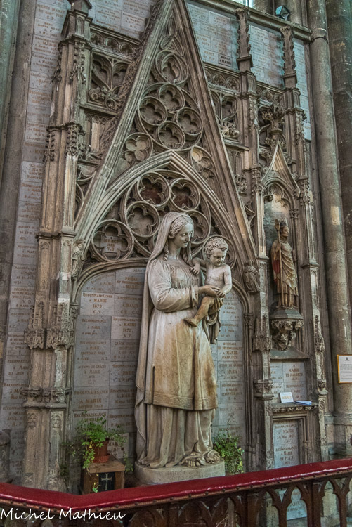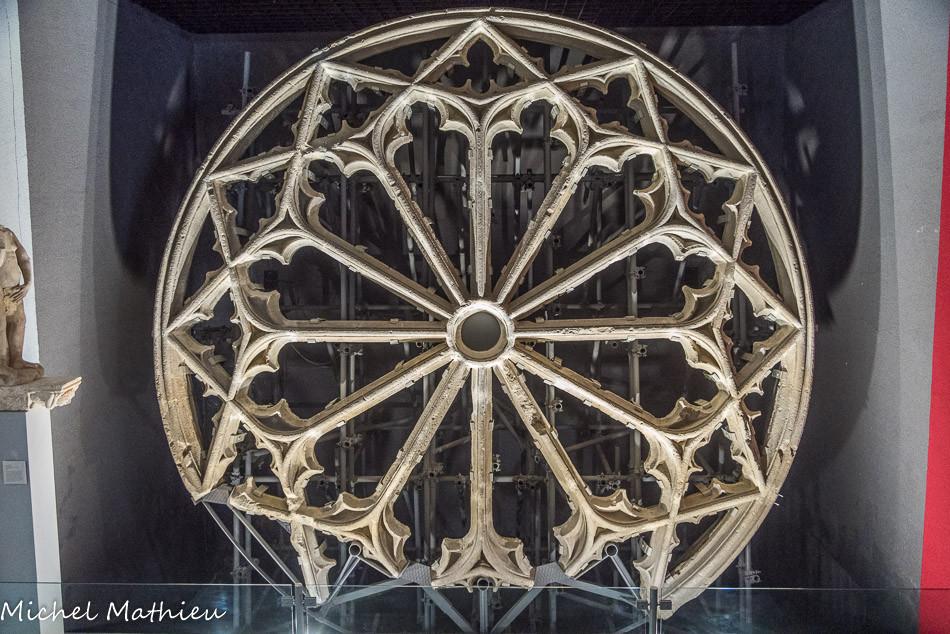 Rosace du XVIe. La rose méridionale était décorée de l'image de la Vierge, de l'Enfant-Jésus et de fleurs, qui rappelaient encore la consécration de la porte du midi.