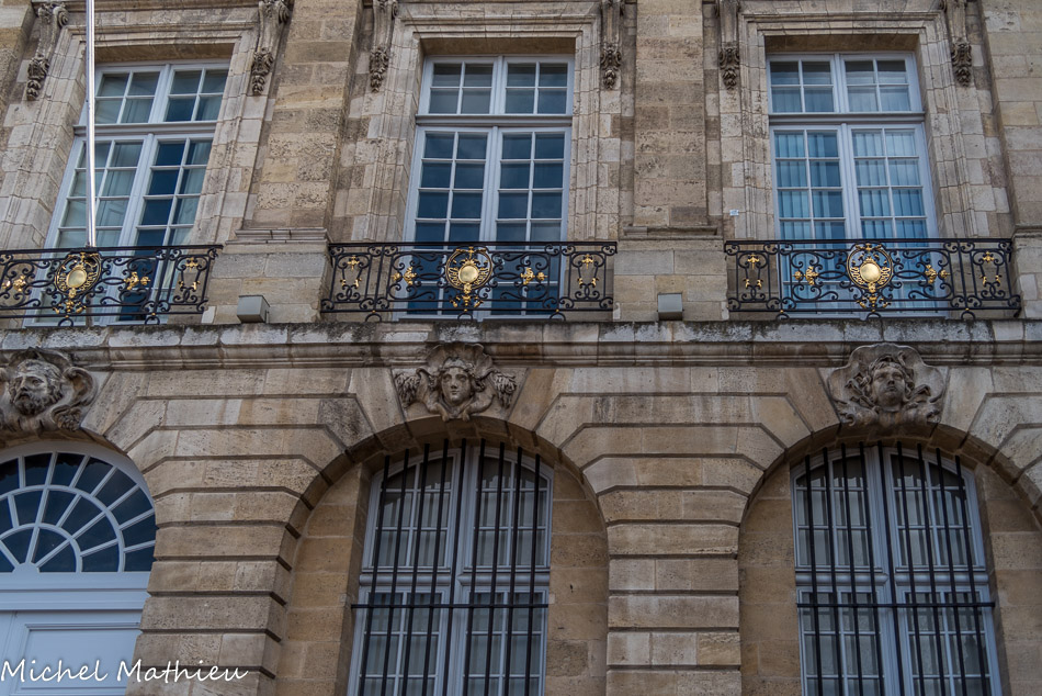 La place de la Bourse de Bordeaux a été réalisée sous l’intendance de Claude Boucher par l'architecte du roi, Ange-Jacques Gabriel, entre 1730 et 1755. Au nord (à droite) se tenait le Palais de la Bourse (actuelle Chambre de Commerce et de l'Industrie de Bordeaux) et au sud (à gauche) l'Hôtel des Fermes (actuelle Direction Interrégionale des Douanes et Droits Indirects qui abrite en sein le Musée national des Douanes). Ce dernier est réalisé par Ange-Jacques Gabriel entre 1735 et 1738 et les sculptures représentent Minerve protégeant les arts et Mercure favorisant le commerce de la ville.