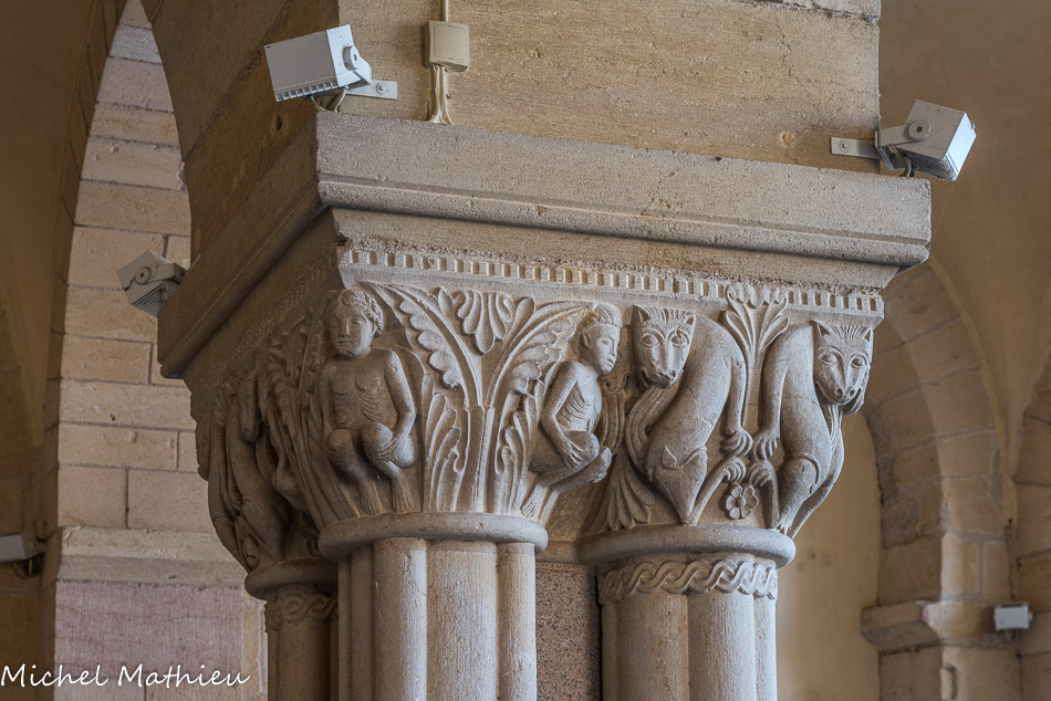 L’église conserve plus de 300 chapiteaux romans aux décors végétal et animal.