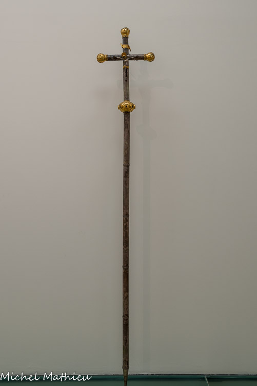 Croix de procession 16e siècle. Argent, cuivre doré et émaillé. Cette croix de procession a gardé sa hampe.