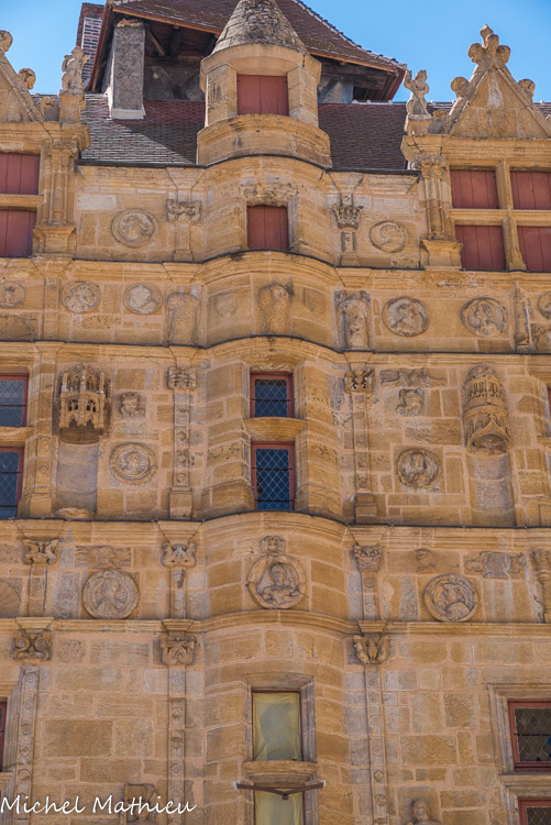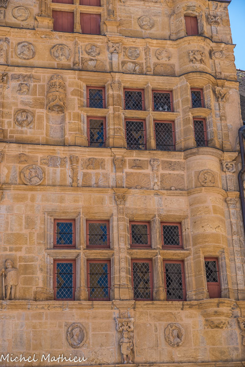 Maisons « Jayet ». De nombreux médaillons sculptés représentent des personnages difficiles à identifier soient en habit du XVIe siècle, soient des reproductions de personnages antiques.