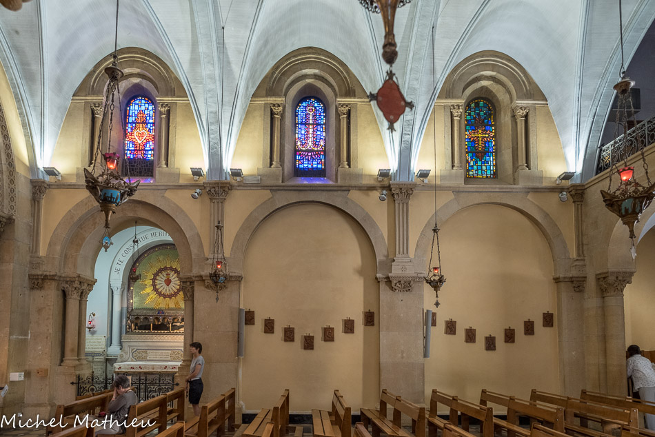 Via Vitae. Le Sermon sur la montagne, Les Noces de Cana. A gauche, La Résurrection de Lazare. Au-dessus, Le Christ au jardin des oliviers, La Flagellation