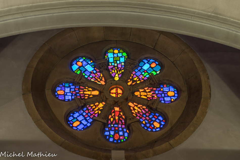 L’observation montre que seule la partie centrale de la rosace est identique à celle exposée à l’intérieur de la galerie du Grand Palais (diamètre 9,50 m).