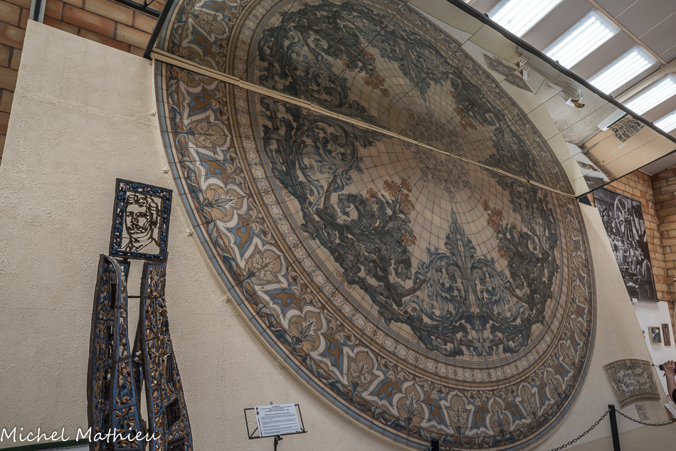 Puis, de gare en gare, de port en port, la rosace bourguignonne a entamé sept ans de périples, de l’Indochine au Maroc, en passant par les colonies malgaches, pour témoigner, au gré des expositions, du savoir-faire des artisans parodiens. Après le Maroc, la Rosace participa sans doute à l’Exposition Coloniale de Marseille du 15 avril à novembre 1906. On sait maintenant que cette rosace fut vendue en 1907 à la « Villa Mon Rêve », restaurant marseillais, 229, Boulevard Périer, où elle fut retrouvée en 1994. Des tractations sont alors entamées avec le propriètaire pour la racheter. Le 16 juillet 1998, le protocole d’accord pour l’achat est faxé. Le 8 août: Michel Patrizio, mosaïste d’art à Marseille est choisi pour les repérages, la dépose, etc.. Des élèves du lycée professionnel Blaise Pascal à Marseille ont été associés à Michel Patrizio. Ce travail, très long et minutieux, effectué au burin, carreau par carreau, va occuper quatre personnes pendant trois mois. Il commence le 12 novembre 1998 (la rosace, piste de danse en terrasse de la « Villa Mon Rêve » a vu ses derniers danseurs la veille).