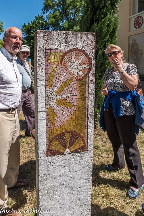 Mosaïque exécutée en août 2011 au cours d’un stage chantier dirigé par Marie-Laure Besson et Mélaine Lanoë, et réunissant 16 mosaïstes.