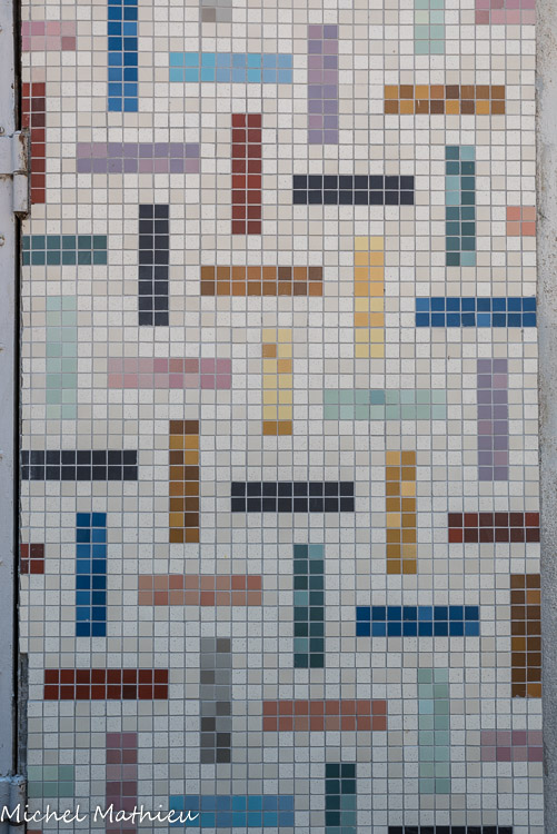 Enfin, par des dégradés subtils, les couleurs contribuent à donner l’illusion de relief, à créer un trompe - l’œil, tout à fait en accord avec l’esprit de la Renaissance. » Fresque de 40 m2 réalisée en carreaux de grès dessinés par incrustation composée de 700 carreaux de 17,5cm x 17,5cm.