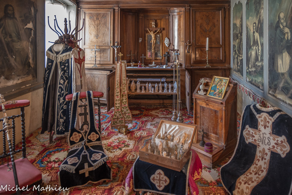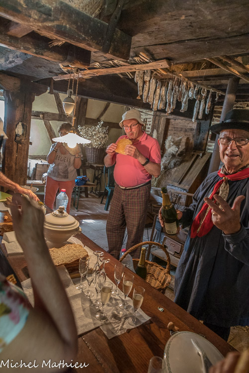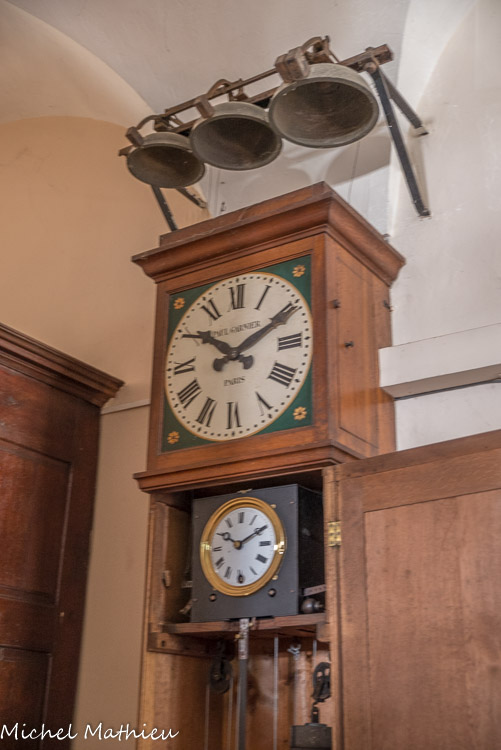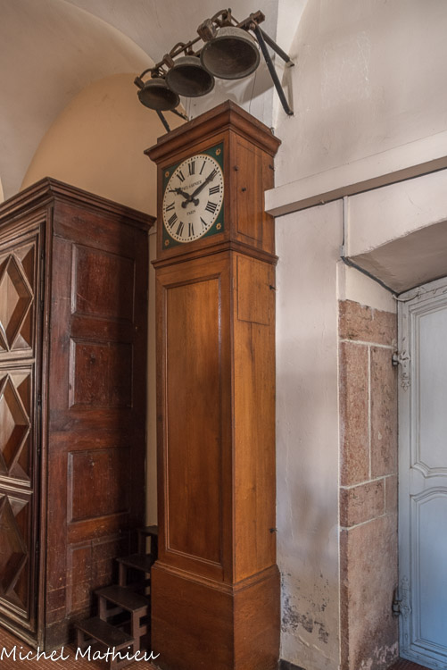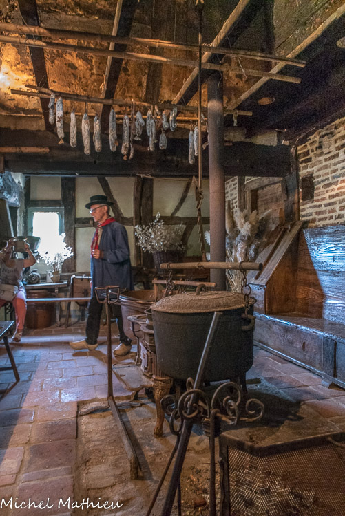 La cheminée de 16 m2 à sa base, surmontée de sa hotte pyramidale et du clocheton au-dessus du toit “la mitre”, possède toujours son foyer “chauffant au large”.